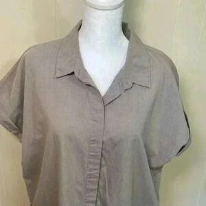 Ellison Gray Button Front Shirt Dress Size Large. Oversized Pockets, Lagenlook