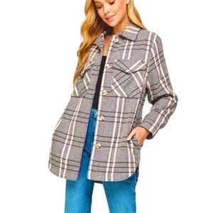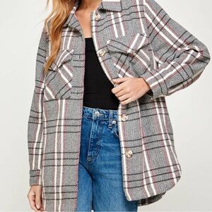 Ellison Jacket plaid tweed trendy front button cream gray sz Large lined