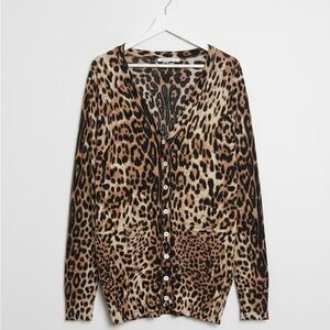 Stylish leopard print jacket. Button-up front. Perfect for layering.