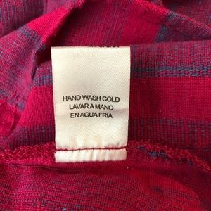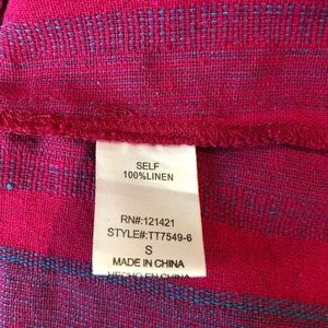 Bright, cheerful, pink and purple striped 100% linen boho Ellison sleeveless tunic with Mandarin collar laced up with tasseled cords. Excellent condition.