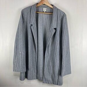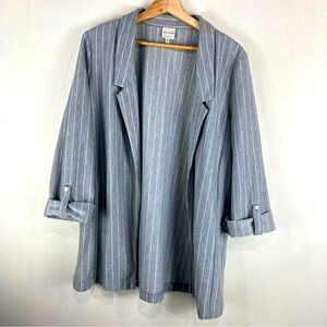 Ellison: Longline Striped Open Front Blazer Cardigan Roll Tab Sleeves Size Large
