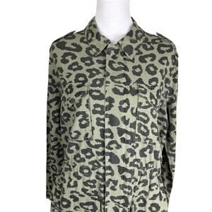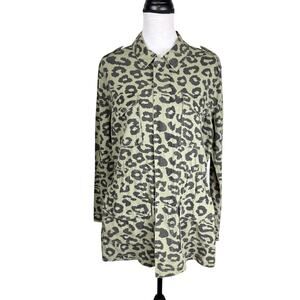Ellison NWT Sage Green Leopard Longline Oversized Utility Lightweight Jacket