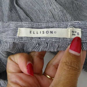 Ellison Stripe Button-Up Cropped Top Black/Blue Women Size S Short Sleeve FLAW