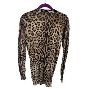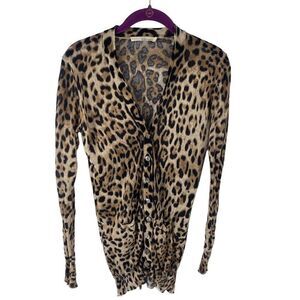 Ellison Womens Animal Print Cardigan Button Up Sweater Linen Blend Brown Medium