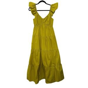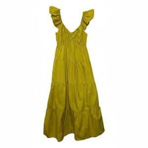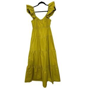 Ellison maxi dress ruffled cap sleeves Size S 100%rayon green, lime V neck