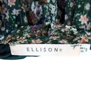 The Ellison Green Floral Paisley Chiffon Midi Dress is a stunning addition to your wardrobe. With 3/4 balloon sleeves and a V-neckline, this dress is both elegant and comfortable. The elastic waist and A-line shape create a flattering silhouette, while the button front and ruffles around the neckline add a touch of femininity. The dress also features a ruffled hem that adds movement and flow to your look. Add your favorite belt (not included) to cinch in the waist and complete the outfit. Perfect for any occasion, this dress will make you feel beautiful and confident. Available in size Small.