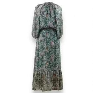 Ellison Green Floral Paisley Chiffon Midi Dress 3/4 Sleeves V-Neck Size Small