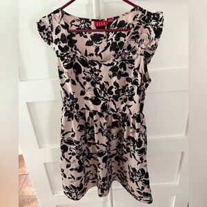Ellle Rosette Flutter Sleeve Black and Pink Floral Dress size Medium