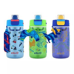 The Ello Colby Pop 14-ounce plastic tritan kids water bottle is lunch bag and backpack friendly. Colby's leak-proof locking flip lid features a fully-covered soft silicone straw that stays clean and minimizes spills. Colby is easy to take with you while on-the-go with a built-in soft touch carry loop. Designed specifically for kids, this bottle is perfect for small hands and staying hydrated throughout the day. A removable silicone fidget toy is included on this bottle which is a top trend in kid’s items. The silicone toy is entertaining and soft to the touch, and will keep little hands busy for hours. Kids love the appeal of the fidget and it can also clip onto any water bottle of their choice so it won’t get lost or fall off. These bottles come in an array of fun colors and patterns including blue, pink, purple and green! This bottle is BPA/BPS free and all parts are top rack dishwasher safe. You can remove the silicone straw to make cleaning a breeze. The lid was also designed to be super easy to remove for filling, adding ice and cleaning! This set contains three 14-oz plastic Tritan water bottles with three fidget toys.