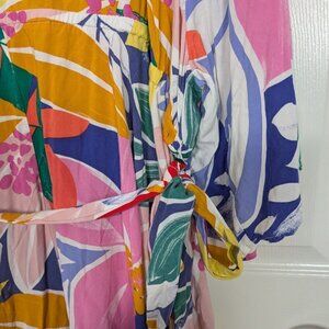 Elloquii Elements Womens 100% Rayon White Paradiso Floral Belted Maxi Romper Size 28