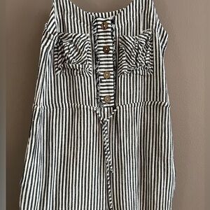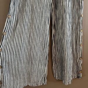 Ellor Jumpsuit Romper Pant White Black Stripe Side Buttons Drawstring Sz XS