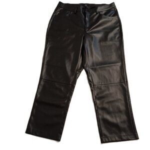 Ellos Black Faux Leather High Rise Cropped Pants Size 14