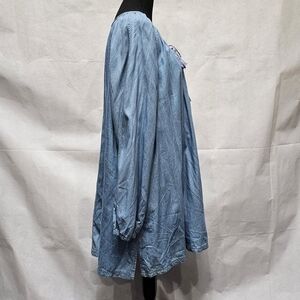 Ellos Blue Denim Tunic 100% Cotton With Tassle Tie Neck Size 1X