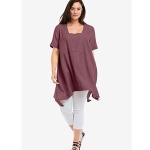 Ellos Burgundy Sunwashed Linen Blend Lagenlook Top sz 2X 26/28