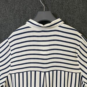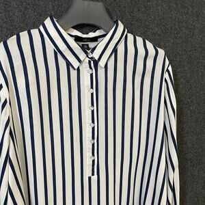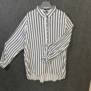 Ellos Button Up Shirt Blue White Vertical Stripe Rayon Blouse Women’s 20 Plus