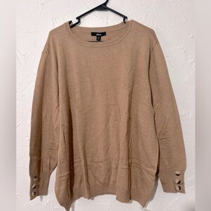 Ellos Button-Cuff Long Sleeves Camel Brown Pullover Sweater Top Sz 1X (22-24)