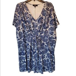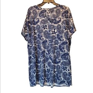 Gorgeous ellos Plus Size blue and white paisley design top. This beauty is a size 22/24, very roomy, stretchy fabric. From a smoke free home.