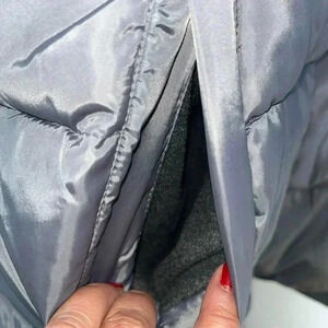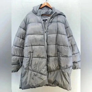 Ellos Coat Long Gray, zip front, puffer, removable hood,fleece lined pockets