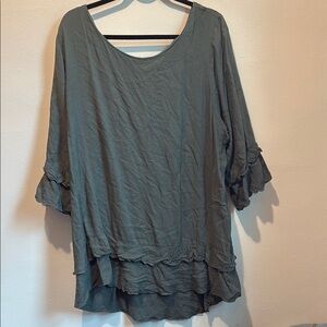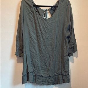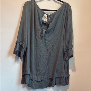 Ellos Gray Bell Sleeve Blouse Relaxed Ruffled Style