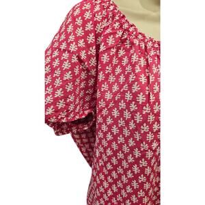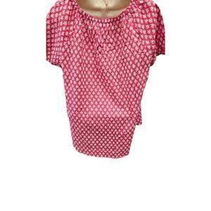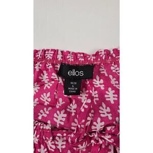 Ellos L large hot pink floral relaxed fit boho tie front blouse big bust EUC