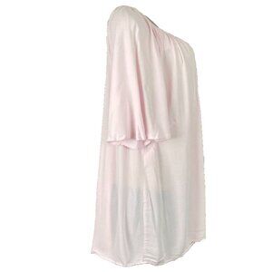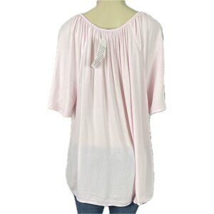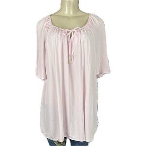 Ellos L-12 Light Pink Scoop Tie Neckline Sheer Rayon Short Flutter Sleeve Blouse