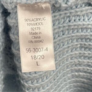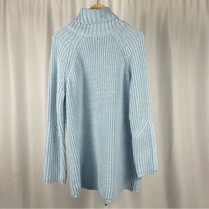 Ellos Large Wool Blend Ribbed Longline Chunky Cowl Neck Sweater Baby Blue