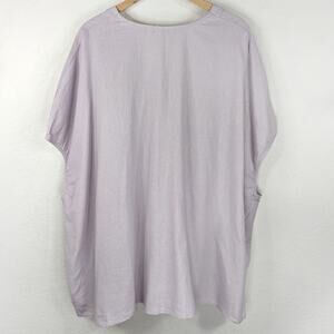 Ellos Lilac Purple Linen Rayon Top Women's L 18/20 V Neck Button Short Sleeve