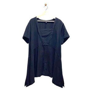Ellos Linen Blend Hanky Hem Tunic Black Size L (18/20) Minimalist Beach Boho