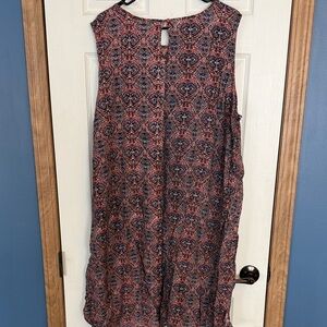 Colorful garment with intricate patterns. Features a mix of orange and blue hues.