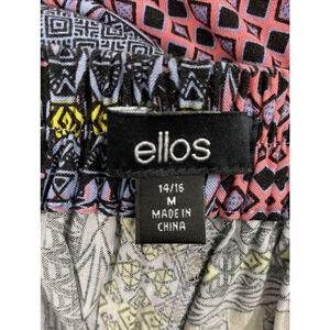 Ellos Pants Womens Medium 14-16 Rayon Quilt Geo Print Wide Leg Slacks Pockets