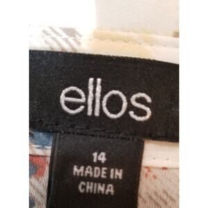 Ellos Plaid Pull On Shirt Blouse / Dress; - Size 14; Material - 100% Polyester; Care -Machine Wash Cold, Delicate Cycle, Tumble Dry Low; Made in China; Pointed Collar, Pull On, Buttons to Waist, Ruching, Long Sleeve Button Cuff, Plaid Pattern, 13 inch side seam slit, Peasant Style, designed with a shift mini-shirt dress style, making it a versatile piece that can be dressed up or down, features ruched details, a wrinkle-resistant design, multicolor plaid pattern adds a touch of bohemian flair,