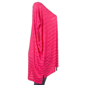 ITEM: Ellos Plus 1X-18/20 Watermelon Pink Sheer Striped Relaxed Fit Step-Hem Short Sleeve Top