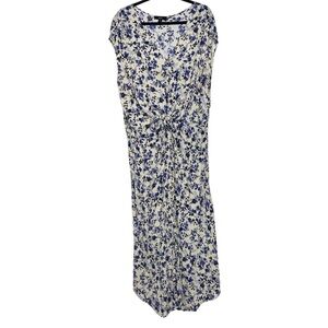 Ellos Plus Size Floral Tie Front Maxi Dress Yellow Blue Rayon Cap Sleeves