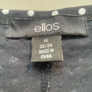 Ellos Plus Size Polka Dot Dress 22/24 Black Scoop Neck Stretch Short Sleeve