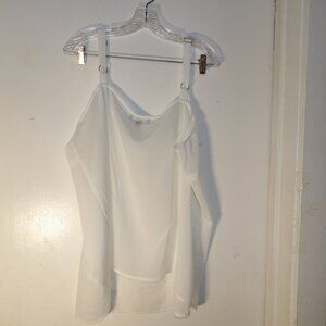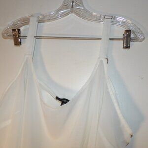 solid white , sheer , adjustable straps , 100% Polyester , Made in India , Sz 2X measurements are roughly 27" from shoulder to hem and about 26" pit to pit , good used condition no issues shows minimal washing wear , pet friendly non smoking home