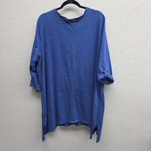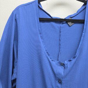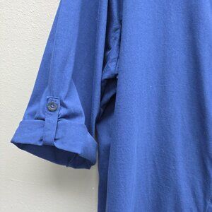 Ellos Shirt Womens 2X Blue Button Front Tunic 3/4 Roll Tab Sleeves Plus Size