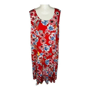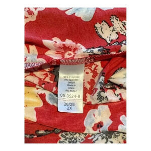 Ellos Size 26/28 2X Fit and Flare Red Floral Knit Dress‎ EUC