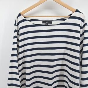 Ellos Striped Tunic Top Womens 3X Blue Nautical 3/4 Sleeve Closet Staple Modest
