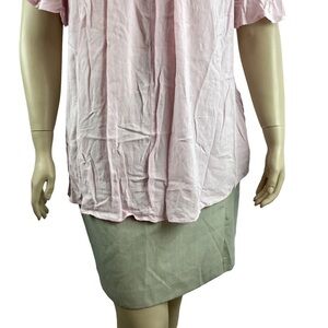 Brand: Ellos Women's Clothing Type: Top Size: 28 Color: Pink Design features: short sleeve, tie neck Colors may differ slightly from photos