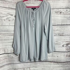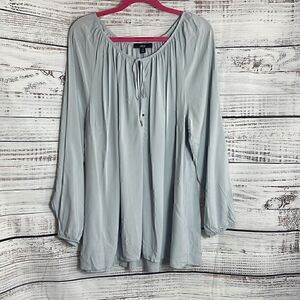 Ellos Top Womens Plus Size 18 /20 W Long sleeve Neck tie peasant tunic gray New
