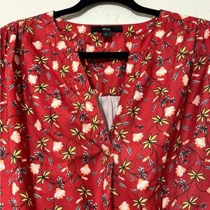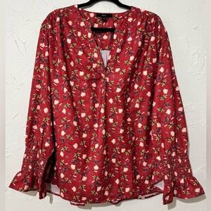 Ellos Women's Floral Notch-Neck Smocked Sleeve Cuff Red Blouse Sz 24