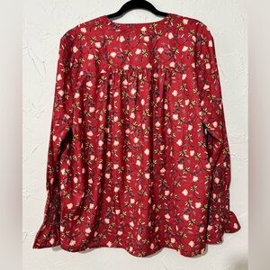Ellos Women's Cottagecore Floral Notch-Neck Smocked Sleeve Cuff Red Blouse Sz 24