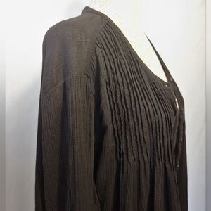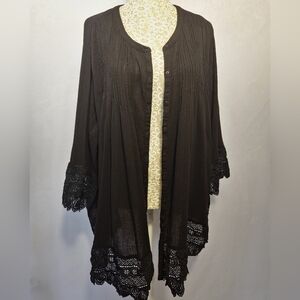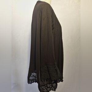 Ellos Women's Crochet Trim Pin tucking 3/4 Sleeve Button Front Round Neck 1X