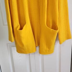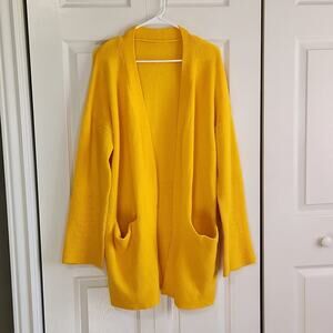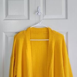 Ellos Women's Long Line Yellow Open Front Cardigan Size 12/14 Wool Alpaca Blend