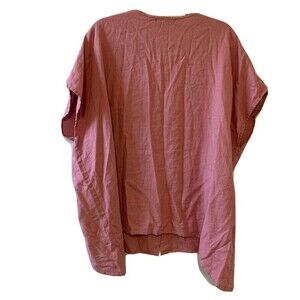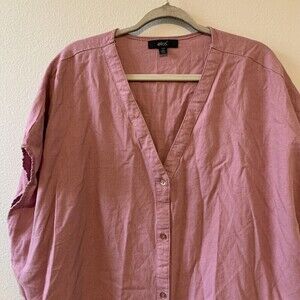 Ellos Womens Plus Size 14 16 Medium Pink Linen Blend V-Neck Button Blouse Top