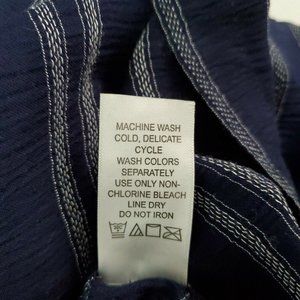 Ellos Womens Top Size 12 Tunic Side Slits Striped Pullover V-Neck Blue NWT