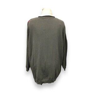 This Ellos women's V-neck argyle sweater pullover in gray is a size 1X. It's a casual, cotton knit with a stylish argyle pattern, perfect for any occasion.