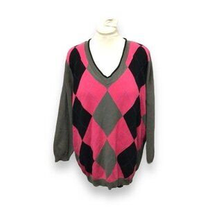 Ellos Women's V-Neck Argyle Sweater Pullover
