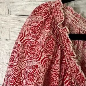 Ellos bohemian red & white balloon sleeve peasant tunic cotton in excellent condition