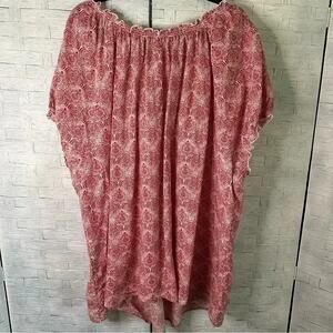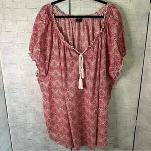 Ellos bohemian red & white balloon sleeve peasant tunic cotton plus size